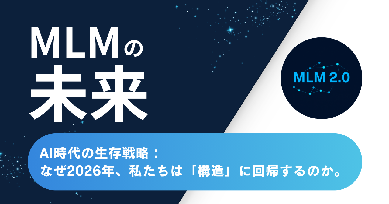 こうした時代に、最もリスクが高いのは「属人的な労働(一人依存)」に頼り続けるビジネスです 。自分が動き続け、自分が売り続け、自分が熱を伝え続けなければならない「MLM 1.0」の手法は、デジタル経済のスピードにおいて決定的な限界を迎えています 。