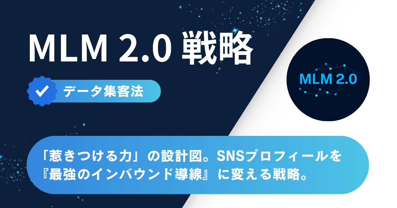 私たちが提唱する「MLM 2.0」の集客は、自分から追いかけるのではなく、データに基づいてターゲット層を「惹きつける」インバウンド手法です 。